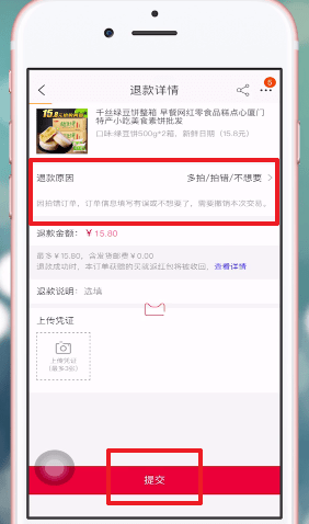 跳转至手机淘宝App填写退款理由,【提交】即可申请退款。