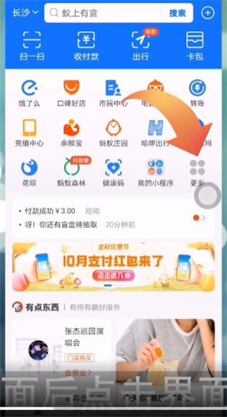 1.打开支付宝APP,点击首页界面中的【更多】。