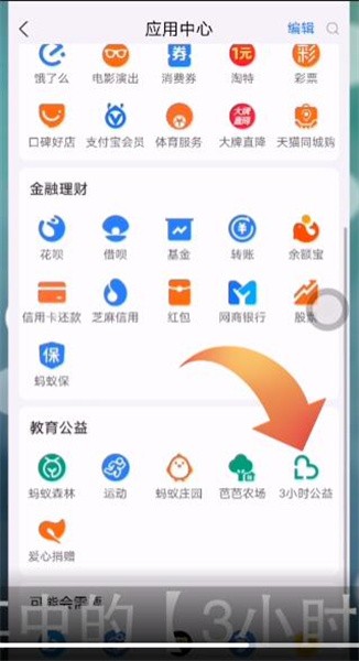 2.进入到全部应用界面后,向上滑动界面找到【随手做公益】点击其中的【3小时公益】。