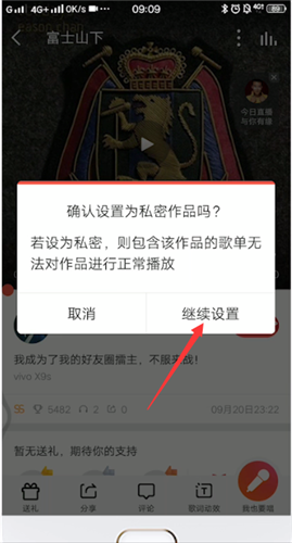 我们在使用全民k歌时是可以看到别人听我们的歌的,当我们不想再让好友听到这首歌,但是又不愿意删除自己作品,该怎么做呢,别着急,今天这期视频就来告诉你,都来一起看看吧,本视频是由vivox9s,Android8.1.0版本录制的。