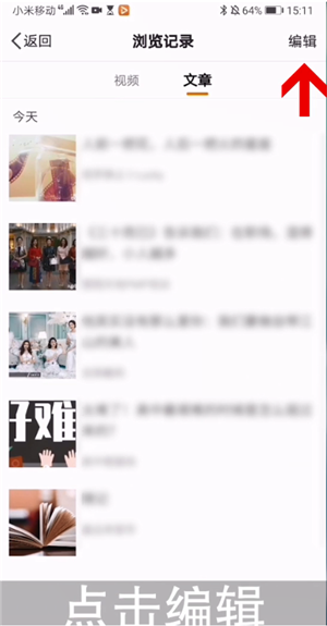 即可看到自己所有浏览记录,点击右上角文章分类,点击编辑,