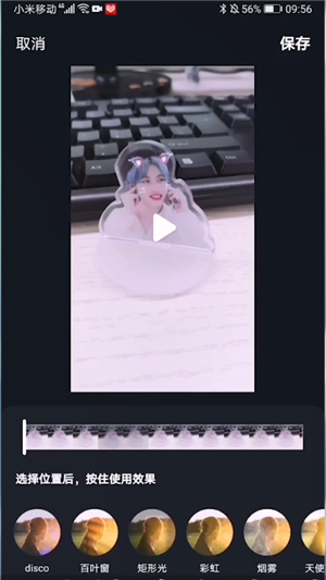 长按效果就能在视频中添加了,最后保存并上传即可。