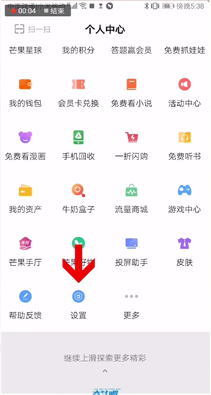 本视频是由华为mate 10 pro手机的Android9版本录制的。首先打开芒果tv app,在首页点击我的选项,进入页面后滑动手机屏幕到底端点击设置选项,