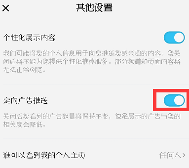 5、进入页面,关闭定向广告推送。