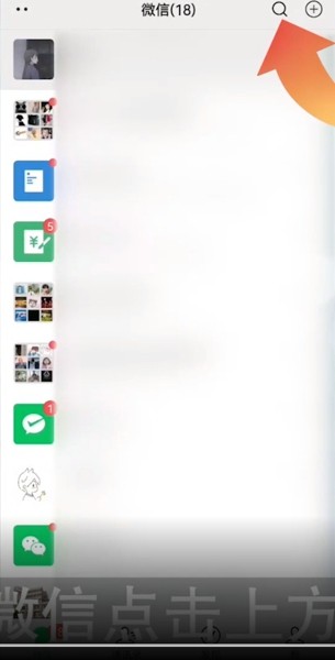1、打开微信点击上方搜索符号然后输入通信行程卡。