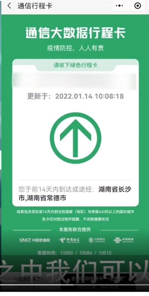 4、在行程码之中我们可以查看到14天内我们经过或者到达的地区。