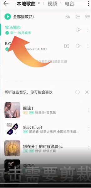 2、在我的选项选择本地进入然后点击需要剪裁的音乐。