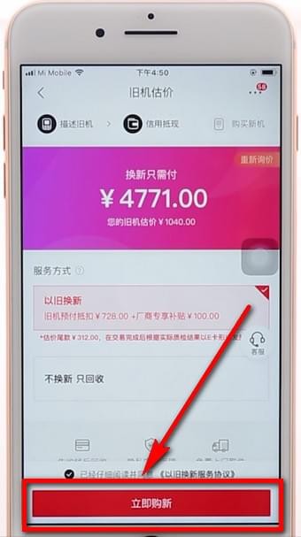 5.估价满意可以直接点击立即购新,然后提交订单即可