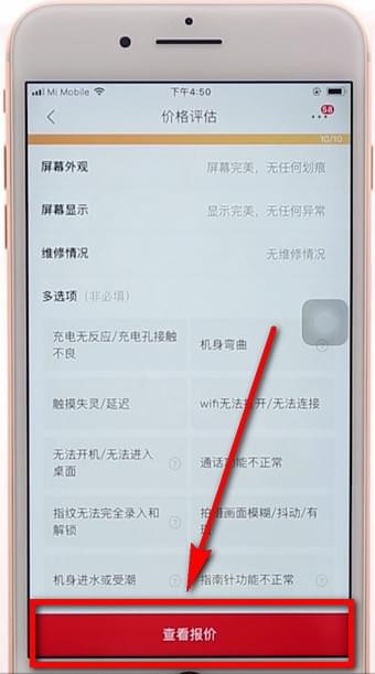 4.接着描述旧机的使用情况,完成后会有旧机估价