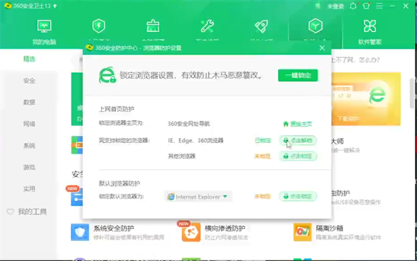 1.360软件会自动锁定电脑中的主页,所以在设置主页时必须先关闭360的主页锁定。点击360管家上方的功能大全,随后选择主页防护,在解绑360所有的主页限制后便可更改浏览器主页。点击浏览器主页面右上方的设置栏,随后下拉点击设置进入设置页面。