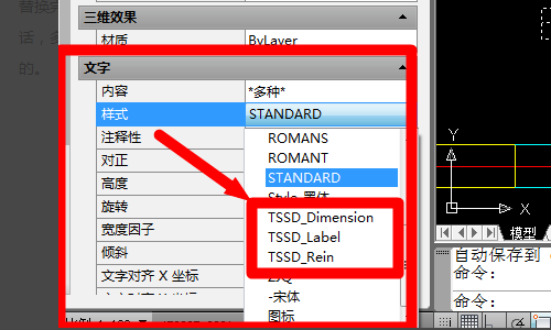 7、然后我们在文字样式的选项表中选择前面以TSSD开头的文字样式,