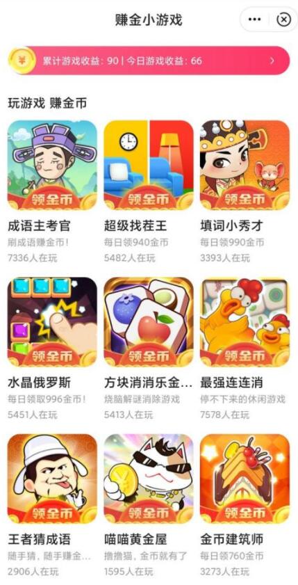 7、玩游戏赚金币:小游戏不用下载,即点即玩