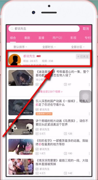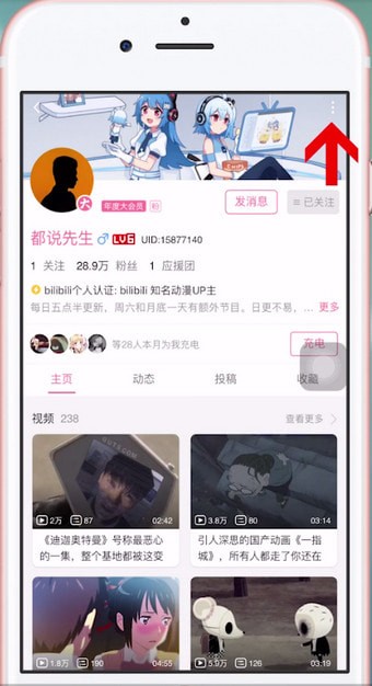 1.打开哔哩哔哩,找到想要屏蔽的up主,点击进入他的个人主页