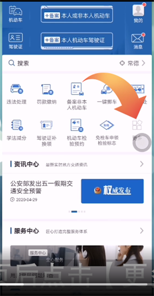 1.打开交管12123APP,点击首页界面的【更多】选项。