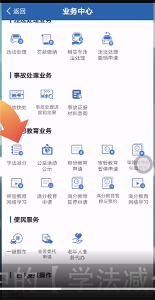 2.下滑界面点击学习教育业务中的【学法减分】选项。