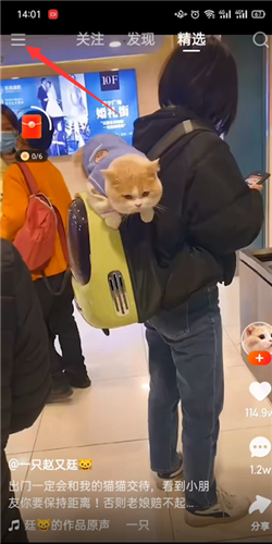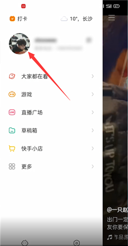 打开快手,点击左上角的三条横线,