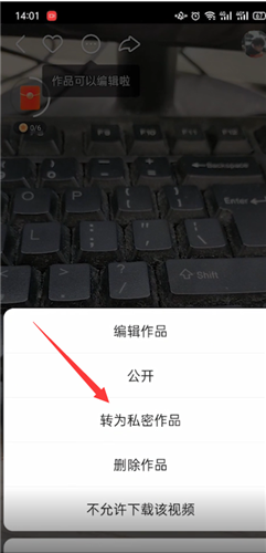 点击作品,在作品下面选择要设置成私密作品的视频,点击左上方的三个点,选择转为私密作品,点击左上角的返回箭头,