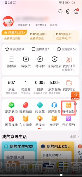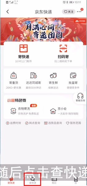 2、在我的页面,点击寄件服务,随后点击查快递;
