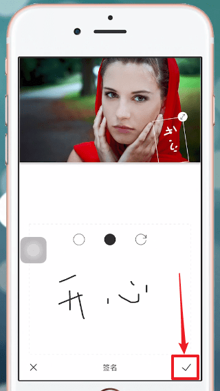 输入要添加的文字或图案,点击【对勾】;