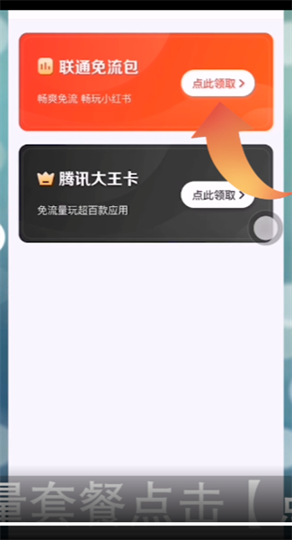 3.进入到免流量界面后,任选一种免流量套餐点击【点此领取】即可。