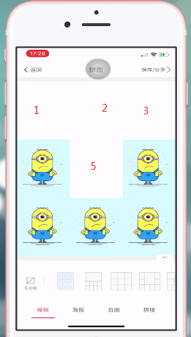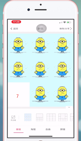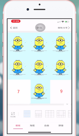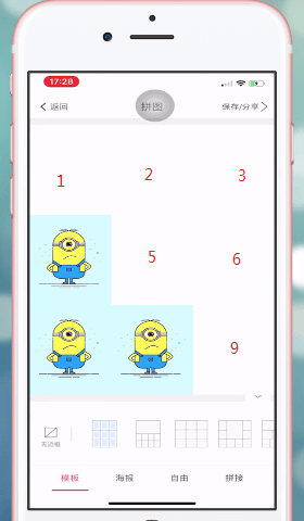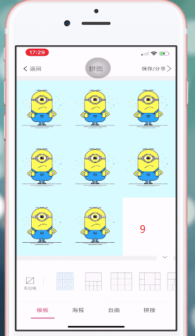 上传9张图片,拼图排在第6、8、9位置,其他位置放白图;