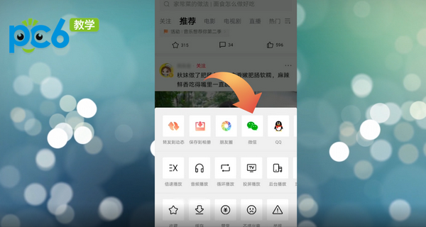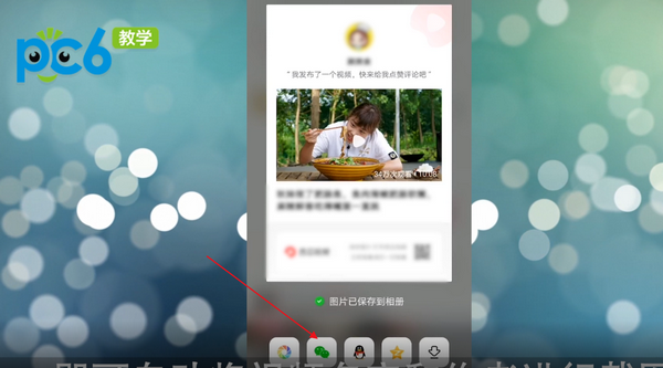 页面的下方会弹出许多的功能选项,在其中找到微信的功能,点击微信。即可自动将视频名字和作者进行截图。