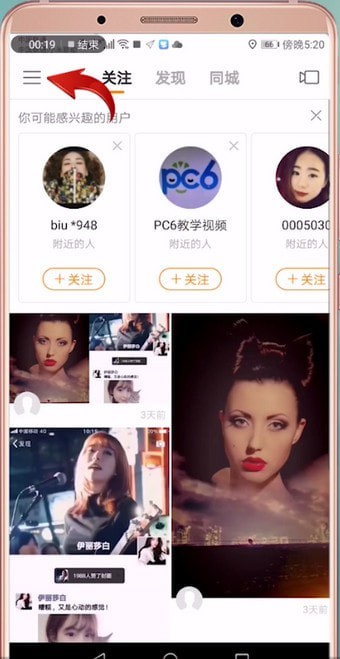 1.首先打开【快手】APP,然后点击左上角三横图标