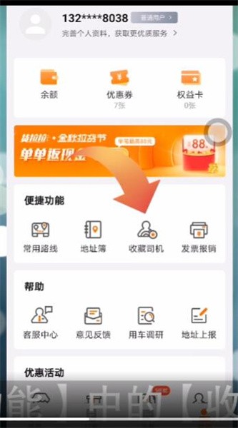 2.进入到我的界面后,点击【便捷功能】中的【收藏司机】选项。