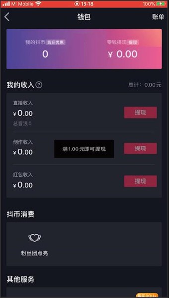 此时在【我的收入】栏就可以查看音浪提现比例了。