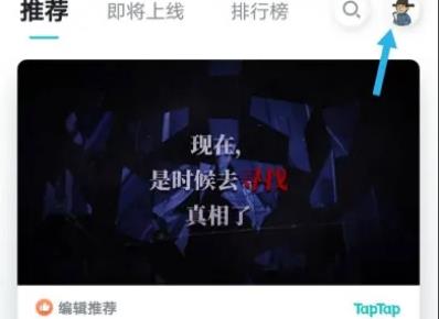 1、首先打开taptap,然后点击右上角的“头像”。