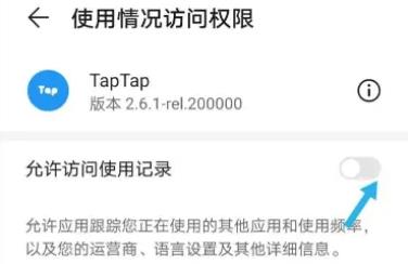 6、最后在taptap后, 打开开关允许访问即可。