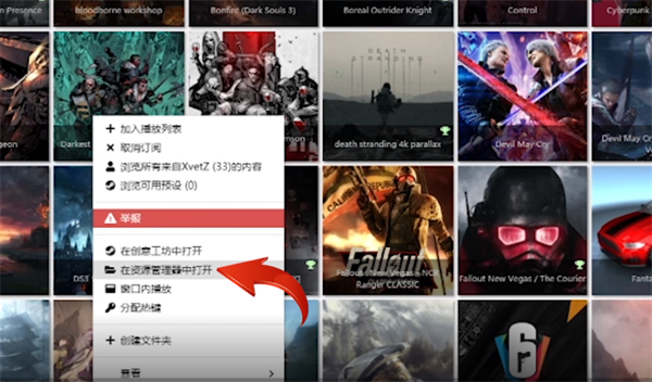 2.用鼠标右键点击需要下载的壁纸,并且在下拉选项中选择【在资源管理器中打开】即可查看壁纸在电脑中的保存路径。
