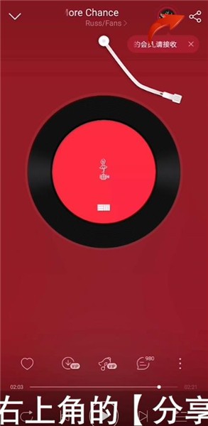 首先打开【网易云音乐】客户端,然后选择一首歌曲点击播放,接着进入歌曲的播放页面,再点击右上角的【分享】按钮,