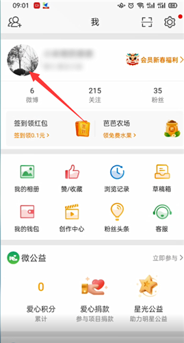 打开手机微博,点击我,接着点击自己左上方的头像,