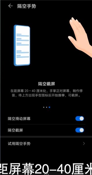 方法二:开启隔空手势截屏后,在距屏幕20-40厘米处,手掌正对屏幕,稍作停留,待上方出现手势图标后开始握拳,即可截屏。