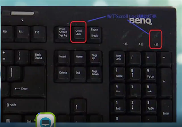 键盘上的第三个灯可以按下scroll lock按键关闭开启,按下键盘中的上下键默认是控制网页或者文档的滚轮按键,而scroll lock可以让键盘控制鼠标光标而不是滚轮的功能。这是以前的电脑为了保证电脑没有鼠标也可以使用,所以设置了scroll lock来让电脑可以使用键盘控制鼠标。