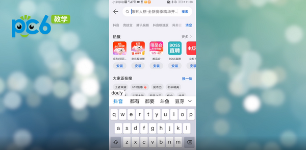 1.打开手机界面,单击打开华为应用市场。单击应用市场搜索框,在其中输入抖音两个字,点击搜索框边上的搜索按钮。