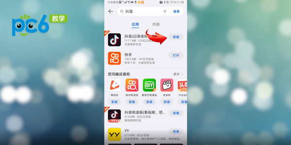 2.找到搜索出的抖音软件,单击软件旁边下载安装按钮,即可开始下载抖音视频。