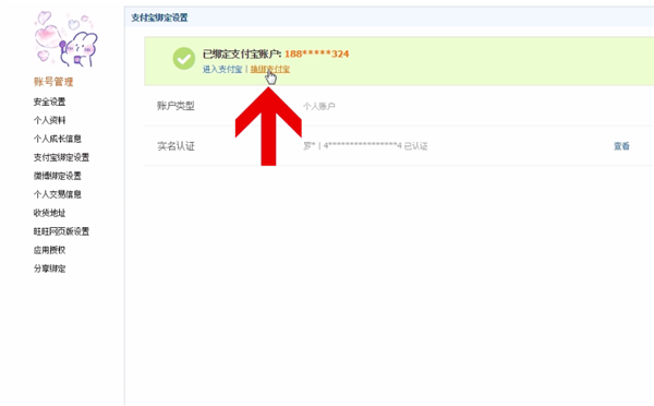 然后点击头像,再点击“支付宝绑定”。跳出新页面之后再点击“换绑支付宝”即可。