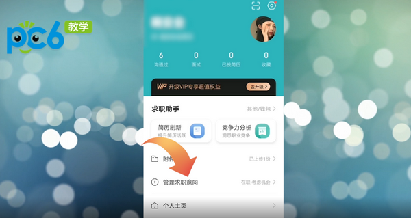 进入到个人账户页面,略微滑动页面,在其中找到管理求职意向的功能,点击该功能。