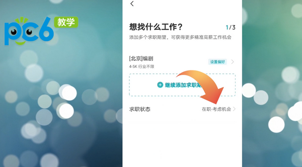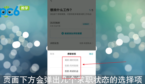 进入求职意向设置页面,在页面最下方有一个求职状态的功能,点击该功能。