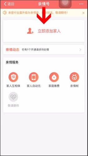 进入后点击立即添加家人、立刻开通亲情号,