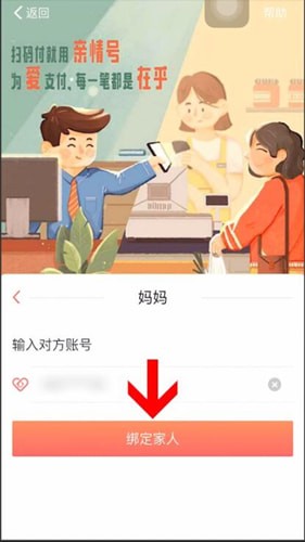 选择一位亲属,输入对方的手机号或者支付宝账号,点击绑定家人,