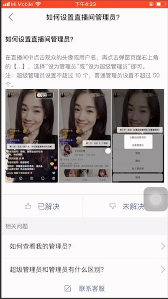 首先在自己的直播间内,点击要设置为管理员的粉丝头像,或者在打字的公屏上选择自己要设置的管理员,然后打开对方的资料界面,点击右上角【…】图标;接着在弹出的菜单中,选择要设置为超级管理员或是管理员即可。