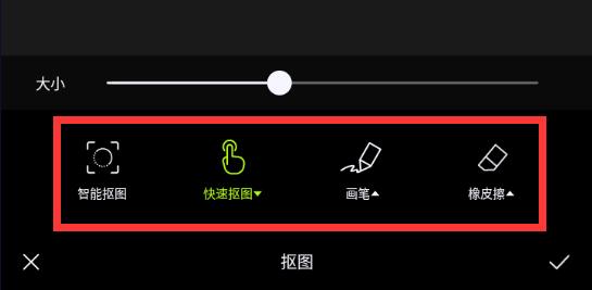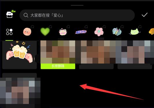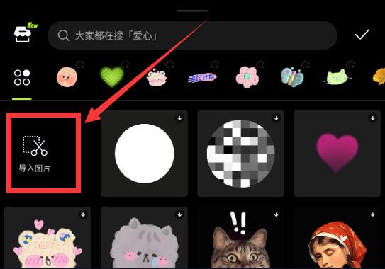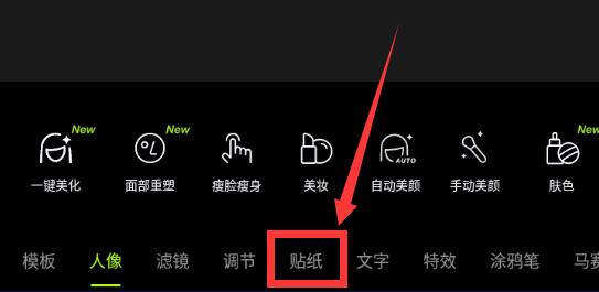 8、就可以为抠图更换背景了,点击“贴纸”下滑到底部,还可以看到所有抠图过的贴纸