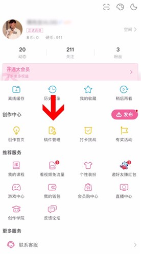 当我们通过时光机发布自己的年度视频后,它就是以稿件的形式发布出去了,所以无法在动态里面删除。打开哔哩哔哩,点击我的,在这里找到稿件管理按钮,