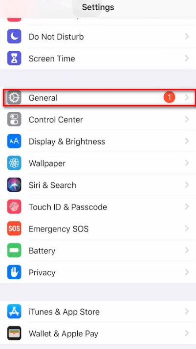 打开通用,在该界面可以看到有一系列英文文字,一直向上滑屏幕直到屏幕出现如下英语单词:general,