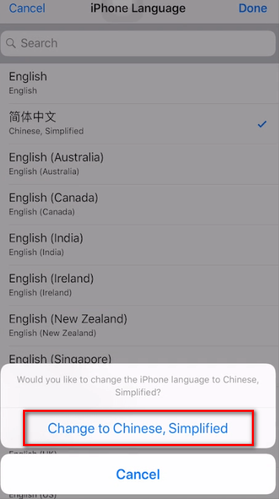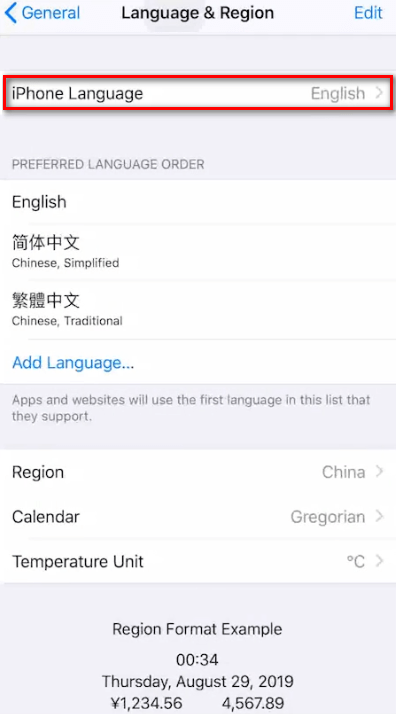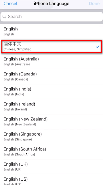 然后可以看到上面写的是iphone语言是English,