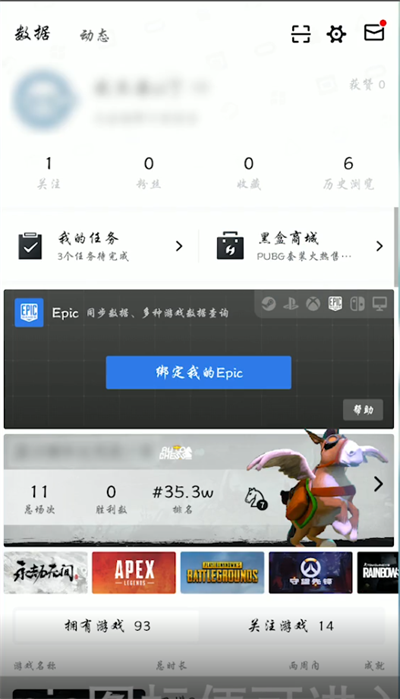1.有不少软件都可以绑定epic账号并查看账号内容,以下以小黑盒软件为例展示具体的方法,在小黑盒主页面中点击下方我的选项,随后选择epic图标便可进入绑定页面。