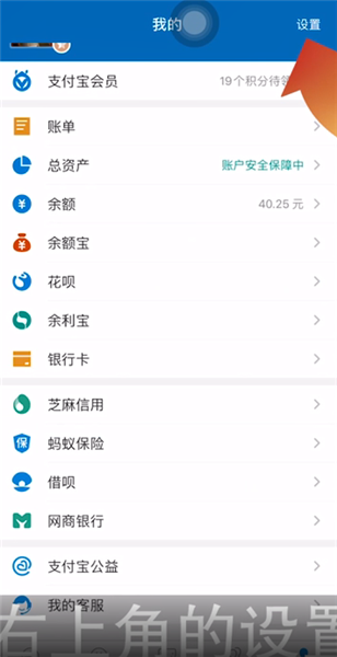第一步:想要取消自动续费服务的话,首先打开支付宝app,点击右下角我的选项,点击右上角的设置选项,